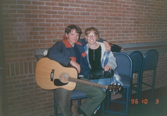 If you ever talk me to about the mess I made of my undergraduate studies, the first time around, I often make a remark about how I went to college not to be a music education major, not really, but to meet a really cool girl and start a really cool band. Life is funny, you know. In the first semester, I met Elizabeth in September and by November, my orchestra viola stand partner, Daniel Lambert and I were forming an alternatve-folk-rock band called M.Cotu. Since this is the age of film photography, a picture of Daniel and I together wasn’t taken until January ’97 (I’ll post it in the 1997 entry.)