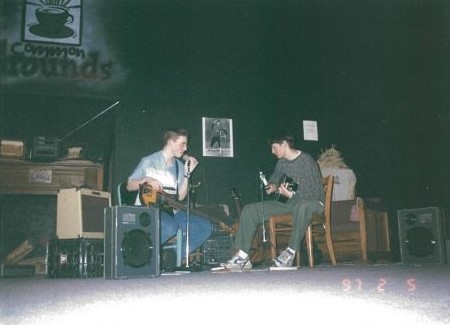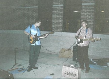 On the far side of the campus, was an old church building owned by the college. In it was a student-run coffee house “Common Grounds.” This was the music venue for independant artists, edgy small time bands, poetry recitals, late night debates. I’ll never forget seeing Exit59 from Taylor and Whipple Tree Band from Wheaton there. It was here M.Cotu had our first real gig. An audio tape of this show exists as well. It was well recieved by the embryonic auidence in attendance.