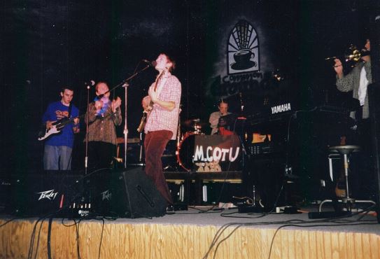 Daniel and I were roommates, but M.Cotu was more of an idea than a reality. He spent part of the year fronting a full throttle alt-rock band called Soul-Manna. They played out, even did a “tour” of sorts that spring break to Virginia and back. I still believed in our partnership. And as Soul-Manna kind of sputtered out towards the end of the school year, Daniel and I agreed to be a “studio-band.” We’d collect our best songs and record an album. At Band Jam ’98, as an acoustice guitar/bass duo, we were recieved well again and that April we recorded “Folk Medicine and Homeopathy.” We made stacks of cassette tapes and handed them out or mailed them to old friends and relations; I even remeber giving copies to people as Christmas presents later that year. It was super lo-fi, but the maturity of the songwriting belied our ages, and inspired two friends to want to make music with us. One, again, Mike Bruneau on drums wanted to “rejoin” the line up, and another, Shawn Stonesifer, a summer camp friend of my fiance’, dubbed the album into his 4-Track, laid on his own parts with keys, vocals, and horn, mailed it to me that summer as an “audition tape.”