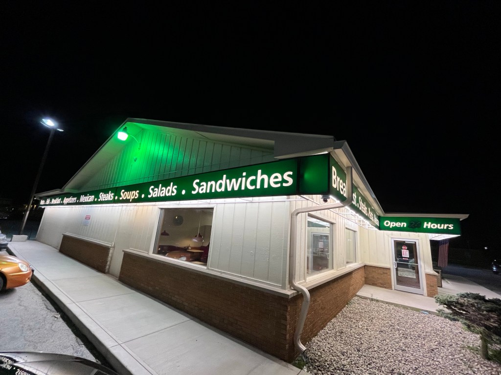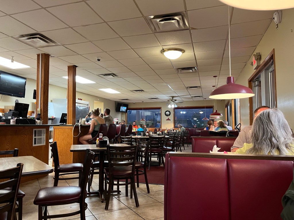 It was a hot evening. 90 degrees F. But the sun was setting as we loaded out and chatted with the members of the audience. Topics: being in bands, cool cover songs, Anglican/Episcopal priest life and spirituality, seasonal allergies, track and field. My family and I headed up I 69 and got off at a truck stop in the deep country darkness, to Ugalde’s Cafe. It’s a glamorous life. For cold drinks and breakfast anytime.