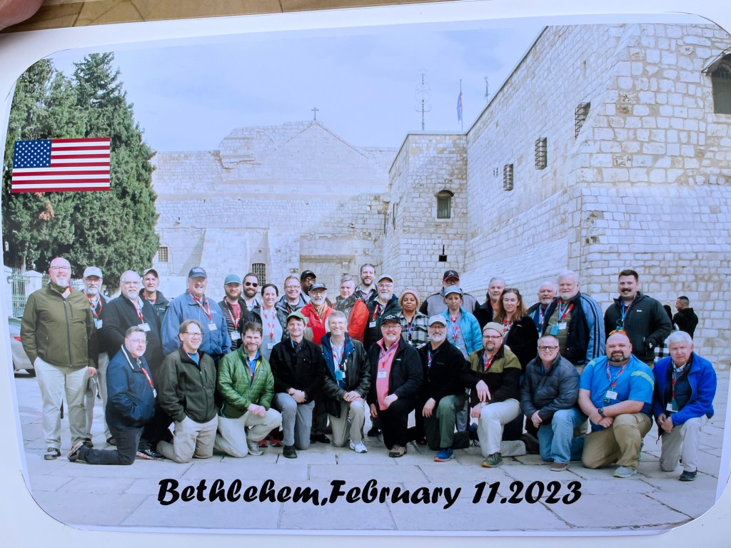 As mentioned, Sarah and I met while part of a clergy pilgrimage group to the Holy Land in February 2023. I feel grateful for getting a chance to make it to Israel when I did. It fit in with Covid travel restrictions behind us and the current war yet to begin. I fell in love with the land in a way I was not expecting. I really felt a kinship to the region of Bethlehem when we visited there. What follows is a pretty casual opinion: Jersusalem was incredible on so many levels, but it is cosmopolitain. I am a midwesterner, a “country mouse,” if you will. Bethlehem (as well as Galilee to the north) had a midwestern feel to it. SAT anaolgy: Jerusalem: California :: Bethlehem: Indiana.