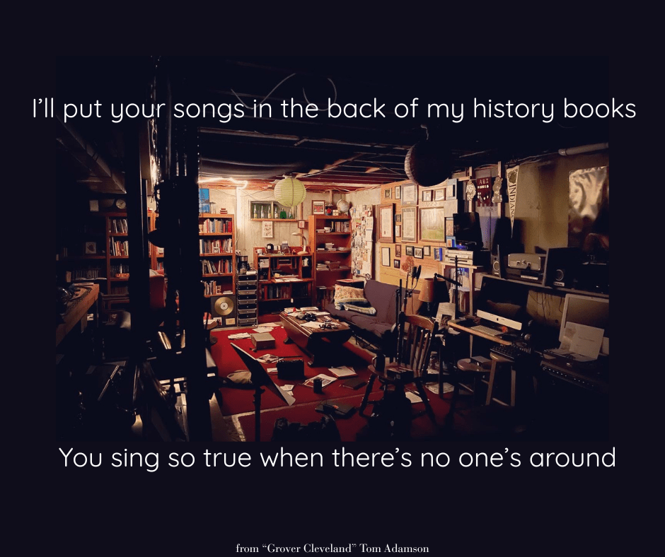 In my song “Grover Cleveland” the line “I’ll put your song in the back of my history books, ‘cos you sing so true when there’s no one around” refers to Daniel Amos’ prolific song writer: Terry Scott Taylor.